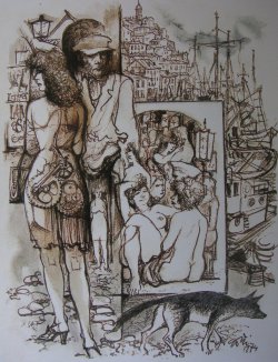 ¿Qué busca en los muelles el rufián? Los sueños que le sostuvieron en el mar se trasmutan en una hetaira frágil cuya "pelvis mecánica" -la expresión es de Goñi- gira sus dentadas ruedas al sonido de monedas.