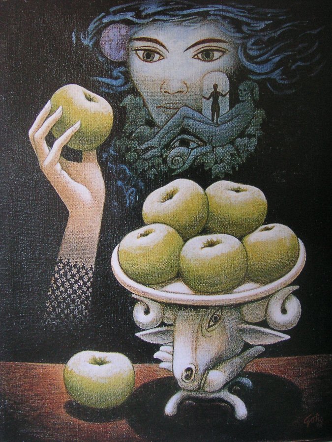 Soy la que ofrece la manzana del deseo, no confundir con la manzana de la Discordia –¡triste Paris, que al entregársela a Afrodita causaste la destrucción de los mejores guerreros frente a Troya!– ni con la que por curiosidad mordió la madre Eva. ¡Pero miento! Son la misma y única manzana: el regalo envenenado de los cuentos, que provoca la muerte de doncellas atrevidas que quieren emularme; el fruto con que yo, la mujer, pierdo a los hombres, del que llevo repleta la bandeja sobre la cabeza del carnero, símbolo de la obstinación y la estulticia, mis mejores y secretas aliadas. Yo vengo de la sombra, de la noche, me perfumo con el aroma de las hierbas salvajes que crecen en el bosque, entre los árboles espesos, y que las brujas recolectan atendiendo a las fases de la luna. Ésta, la luna, soy yo misma, la que para su perdición cantaron los poetas y que peina cabellera de celestes nubes, donde sueñan los hombres en entrelazar sus dedos. Mi tarea consiste en llevarlos a la tumba, consumando mi hechizo seductor. ¡Húmedo reino de limacos, de terrestres caracoles que dejan su rastro de plata sobre el musgo de las lápidas! Soy la inalcanzable, la que ríe en el límite del sueño y, apenas entrevista en la foresta, huye descalza sin herirse los pies en los abrojos y vestida de azuladas gasas hurtadas a la niebla, conduciendo al viajero a lugares que sólo frecuentan alimañas.