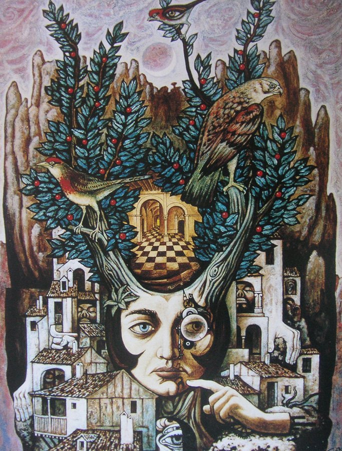 Mágica aparición de la profética sibila. En su cabeza de pájaros y ramas, desahuciados corredores. Un rastro fugitivo de tristeza... ¡Se cansó la sibila de escrutar los tiempos!