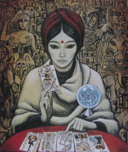 Sabia y gitana, la pitonisa despliega los arcanos.