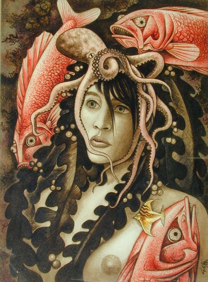 El día en que el mar entregue los muertos de su seno –lo profetizó el Águila de Patmos–, devolverá envuelta en algas y perfumada de salitre a la mujer que se ahogó al contemplar su hermosura contra el océano. Pagó su descuido, pero a cambio accedió a los secretos del abismo. En realidad no se ahogó: se convirtió en sirena. Los animales de las profundidades la vistieron de la vegetación marina, prestándole su industria de insólitos afeites con los que alcanzó su legendario encanto, el mismo que de antiguo cantaron los poetas. Ella lo ignora, porque bebió del licor que borra la memoria, pero dejó un amor en tierra la víspera de celebrar los esponsales. Añorando inconsciente sus caricias, interroga a quienes se aventuran sobre frágiles astillas, persiguiendo sus quimeras. Pero nadie le da razón de su adorado. Entonces se irrita y conduce contra los arrecifes a los barcos. En algunas ocasiones, se arrepiente. Flanqueada de cardúmenes de peces que recuerdan el azogue del espejo –el espejo es la herramie nta de la frivolidad de las mujeres–, serpentea entre la linfa, verde, azul, de colores y gamas imposibles, y recorre los mares infinitos.